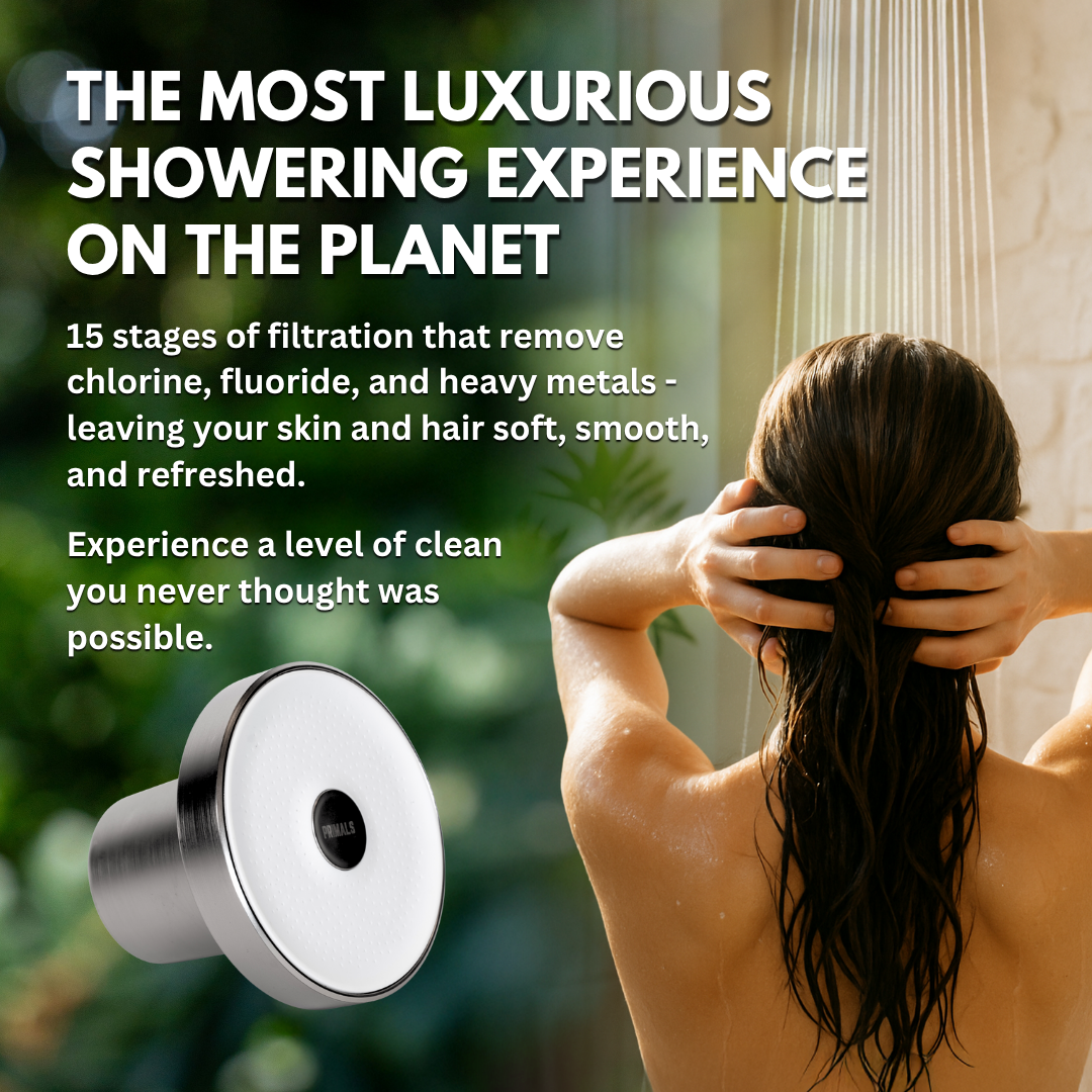 Your skin, hair, and lungs deserve better. The PRIMALS Filtered Showerhead removes chlorine, fluoride, heavy metals, and 300+ contaminants with its 15-stage system - restoring your skin, strengthening your hair, and making every shower a step toward better health.